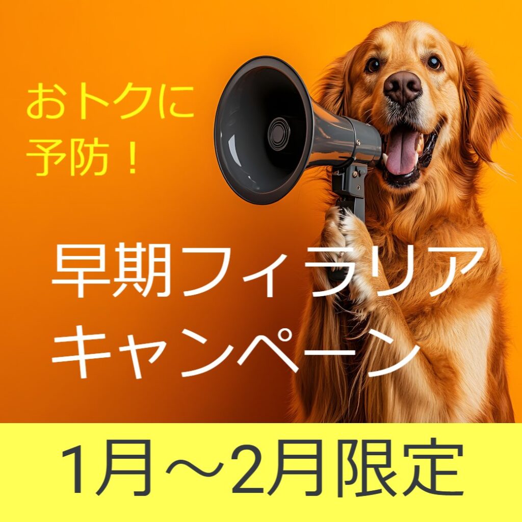 当院では1月5日~2月28日まで早期フィラリアキャンペーンを行っています。